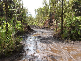 This was our driveway after the bulldozers and trucks got through with it...lots of mud, but solid lava underneath.